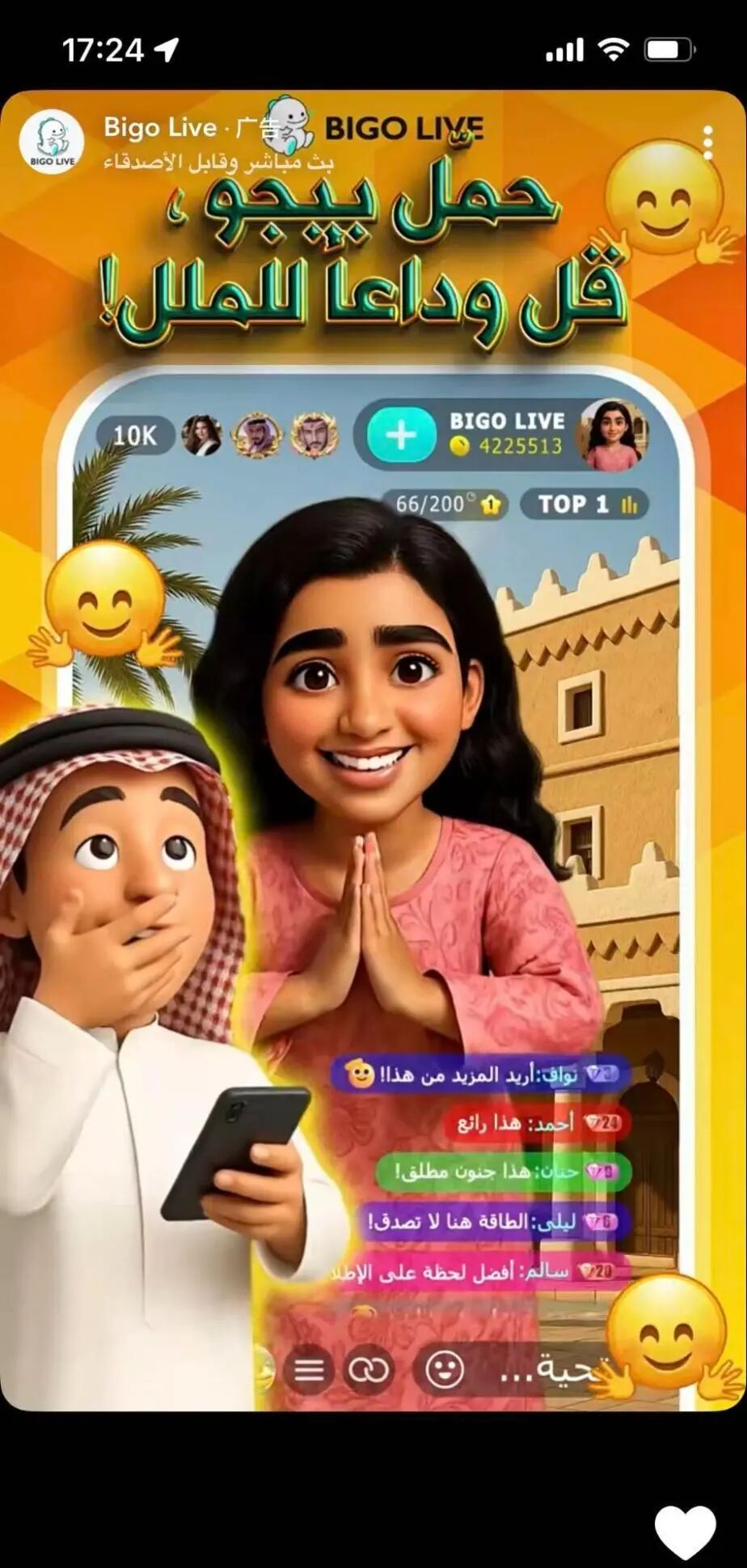 在稳固沙特这一核心市场的基础之上,Bigo Live 敏锐察觉到 Snapchat 在中东地区的巨大潜力,果断开启了针对这一地区其它国家的大规模拓新投放,成功触达了更广泛的“优质潜力股”。