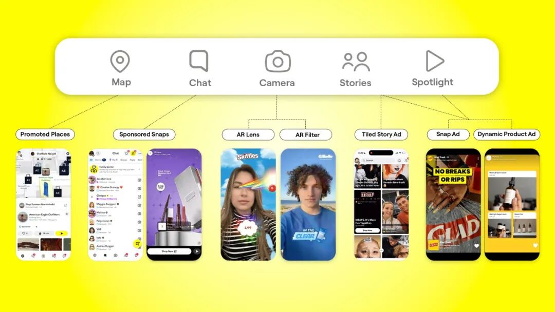 近 2 万亿条 Snaps 的背后,是用户将 Snapchat 融入日常、持续进行自我表达和熟人沟通的真实写照。得益于这种高质量的使用场景,Snapchat 打造了一个高注意力的广告环境:平台拥有近 9.5 亿全球月活跃用户,美国市场用户平均每天打开应用超过 30 次,其中 97% 的用户在每次打开 Snapchat 时会点击里面的多个 Tab(Snapchat 中有 5 个主要 Tab),这意味着广告主可以在 Snapchat 中的多个场景自然触达用户。