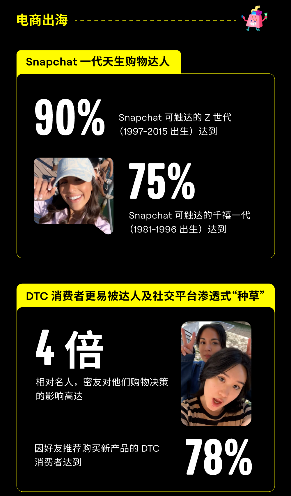 Snapchatter 不仅是独具个性的新生代年轻人,也是敢于尝新、重塑消费习惯、颠覆品牌和用户互动形式的千禧一代和 Z 世代。品牌如何才能俘获他们的芳心,实现双向选择?